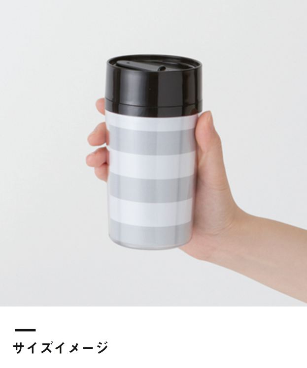 プラスチック2層のタンブラーは、1層に比べて熱い飲み物を入れた時に冷めにくく、冷たい飲み物を入れた時に結露が出ません。通販ならでは格安価格で社名入れやデザインプリント制作が可能なので、集客したい店舗や購入キャンペーンのノベルティとしてもお薦めです。