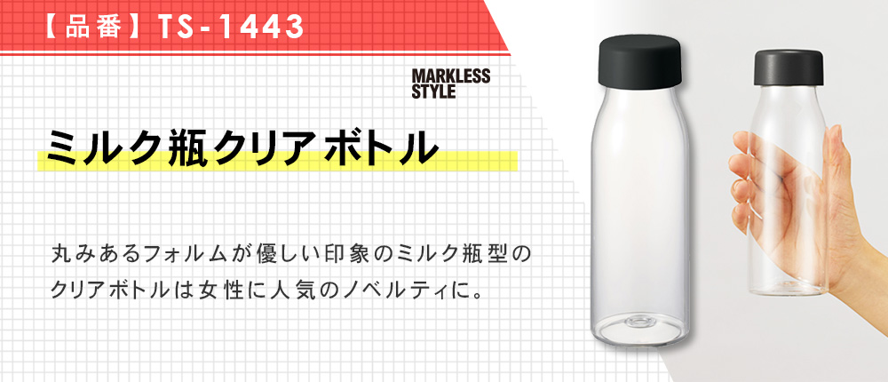 優しい印象を感じられるミルク瓶クリアボトルは女子中高生、大学生、OLと女性に人気のボトルになっております。ノベルティに向いている激安の単色から販売品にお薦めのフルカラーまで幅広い名入れ印刷に対応しております。大量発注での特別割引もございますので是非ご利用下さい。