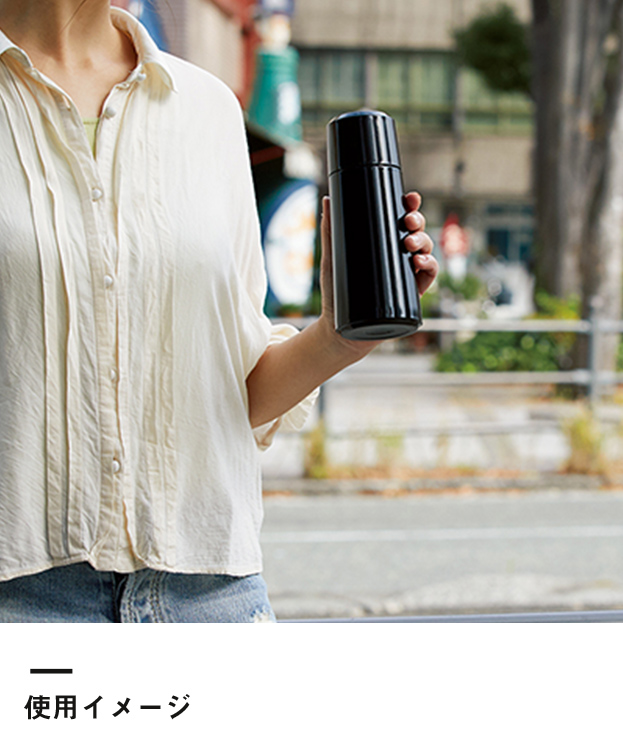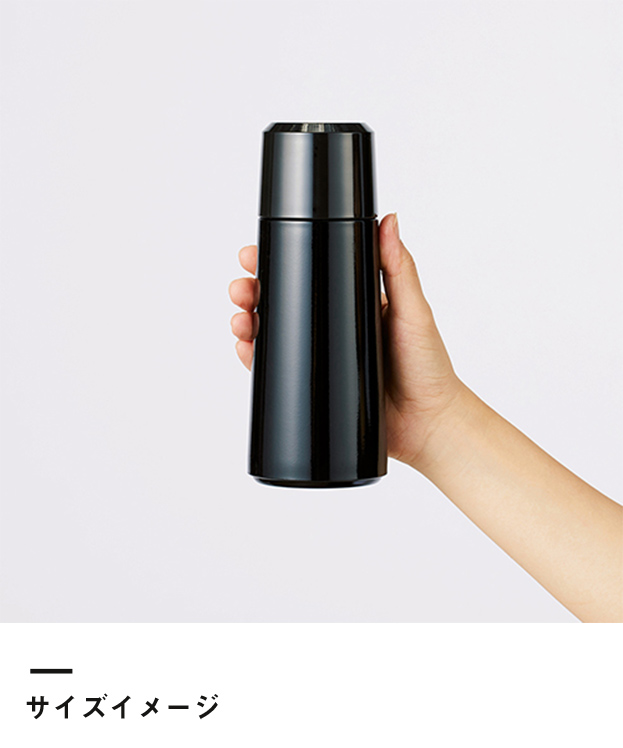 名前の通りコーンの様な斬新なデザインをしたステンレスボトルですが保温冷対応の実用的なサーモボトルになります。また飲み物が触れる内側には錆びにくいステンレスを使用し汚れやニオイも付きにくいので清潔に長く使用して頂けます。ホワイトとブラックの2色になりポイント名入れや側面にグルッと大きくデザインを印刷可能です。