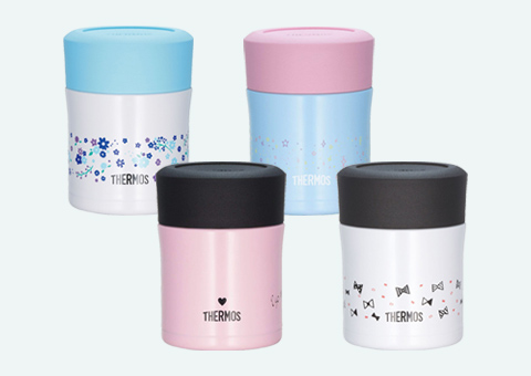 可愛らしいブルーフラワー、甘すぎないスイートピンク、手書き風ポップホワイト、ファンシーなブルースターと女性層の心をグッと掴むデザインの魔法瓶仕様スープジャーになります。一人分の食べ物を入れるのに丁度良い大きさとなりメインからスイーツまで幅広いレシピに対応しています。料理教室の入会記念品やSNS応募抽選キャンペーンなどに。