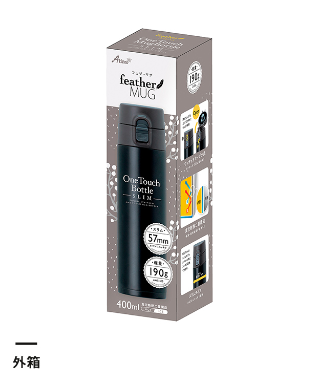 アトラス ステンレスワンタッチ軽量スリムマグボトル400ml AWS-400