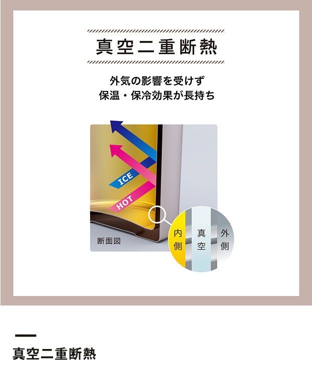 - ※保温効力とは室温20℃±2℃において製品に熱湯を口金の下端まで入れ、縦置きにした状態で湯温95℃±1℃になったとき、ふた・中せんをして6時間放置した場合におけるその湯の温度です。