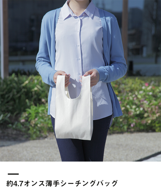 約4.7オンスの無漂白コットン素材を使用し、ナチュラルなおしゃれ感を楽しめます。雑貨店のギフトラッピング用バッグや、アパレル店舗の福袋バッグなどにプリント製作はいかがでしょうか。