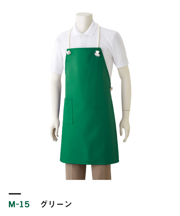合成皮革(PVC)を使用したレザーエプロンは、汚れをサッと拭き取るだけの簡単お手入れが便利な厚手のエプロン。紐の結び目を変えるだけでサイズ調整が可能なところもポイントです。明るいカラー展開に加えて、ロゴやイラストプリントでオリジナリティのあるエプロンを制作致します。