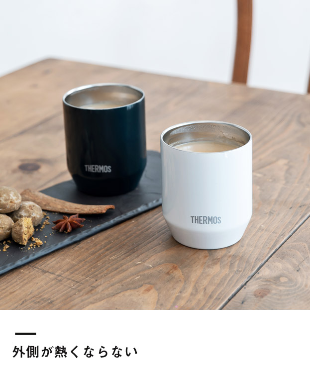 サーモス 真空断熱カップ 360mlは、魔法びん構造で保冷・保温効果が高く、冷たい飲み物は結露しにくく、熱々の飲み物を入れても外側が熱くならないカップです。小さめの360ml容量で手に収まりがいいサイズ感も魅力。温かみのある4色のカラーで、男性向けにも女性向けにもお薦めです。名入れ印刷を施して記念品制作にいかがでしょうか。