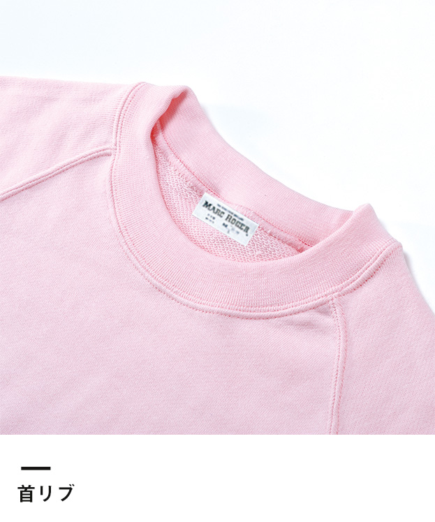 ラグラン袖仕様で腕が動かしやすいマークロジャートレーナー(ジュニア)。首リブ・袖リブもしっかりしているジュニア用の長袖トレーナーです。ベーシックカラーから明るいカラーまでお選び頂けますので、チーム名や学校名などをプリントしたオリジナルトレーナーの作成にご活用ください。激安価格で名入れを承っております。