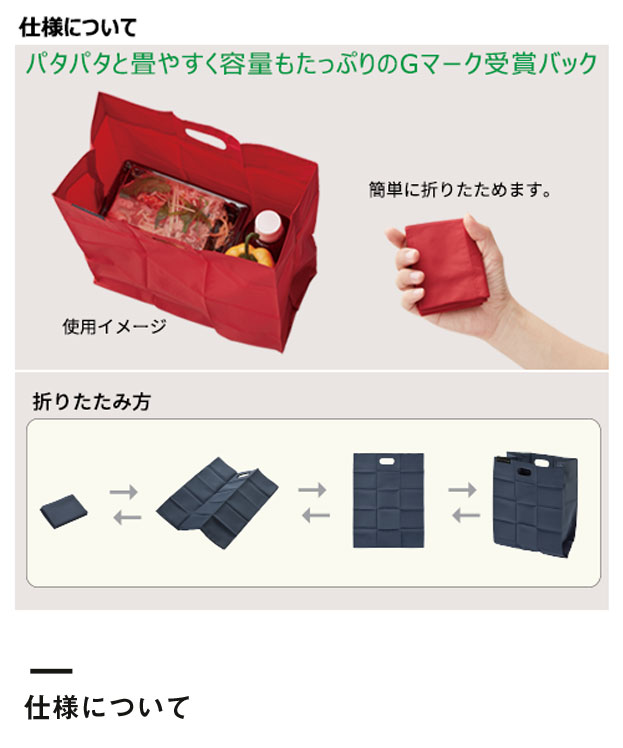 「ポケットスクエアバッグ」は、2019年度のグッドデザイン賞も受賞しているスマートデザインが魅力のアイテム。格子状のプリーツ加工によりパタパタと簡単に折り畳むことができ、胸ポケットに入れて持ち運べるほどコンパクトになります。使用時のデザインもシンプルなので男性でも使いやすい商品です。マチが広いのでコンビニ弁当なども入れやすく、実用性も◎。3か所にプリントが可能ですので、店舗ロゴやブランド名を名入れして、ノベルティや物販アイテム制作にいかがでしょうか。
