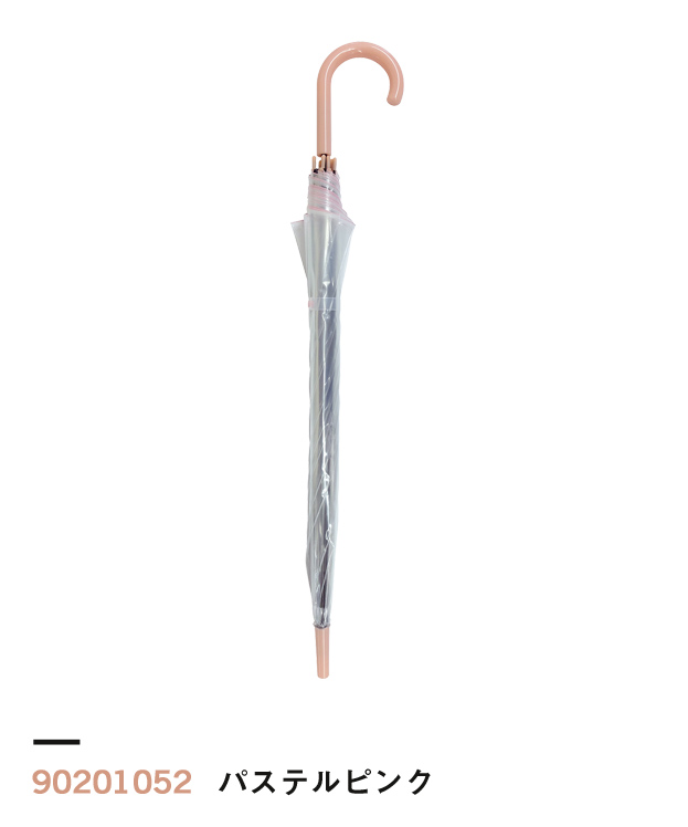 「クリアジャンプ傘60 ※名入れ専用商品」は、視界がクリアなビニール素材の長傘。一般的な女性向け長傘とされる親骨60cmサイズとなります。ワンタッチで開くジャンプ傘なので実用性も抜群で、柄と先端部分のみカラー違いとなっているので派手すぎず、どんな場面でも使いやすい商品です。ブランド名やイベントロゴなどの名入れを行い、ショップの販売グッズやイベントの記念品などにいかがでしょうか。