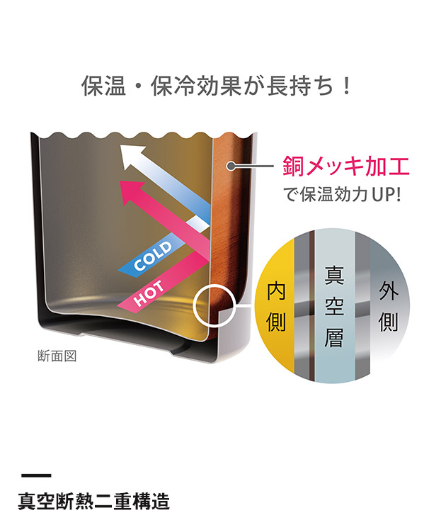 「アトラス SWITCH マグボトル750ml」は、スクリュータイプのキャップが付いた保冷・保温マグボトル。真空断熱二重構造により外気の影響を受けにくく、飲み頃温度が長持ちします。キャップは別売りのワンタッチタイプと付け替えることも可能です。氷を入れやすい広い口径と、傾けても氷が飛び出さない氷止め付きが便利。成約記念品や物販グッズなどに、名入れ製作を承ります。