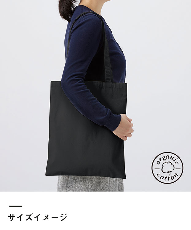 「オーガニックコットンフラットショルダートート」は、有機農法で栽培されたオーガニックコットンを使用したトートバッグ。B4サイズが収納できる大きさで、ロングハンドルなので肩掛けしやすくなっています。すっきりフラットなフォルムは展示会のカタログ配布にも最適。企業ロゴや店舗名入りの特注ノベルティや記念品作成にいかがでしょうか。
