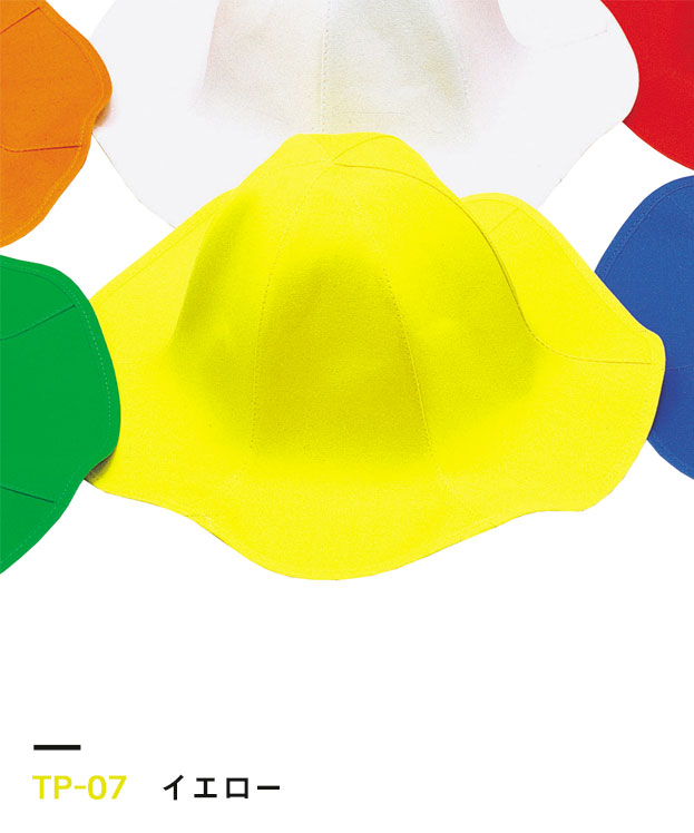 「チューリップHAT」は、クラウン部分とツバが一体となったチューリップの花のような形のハット。色鮮やかなカラーバリエーションで販売しており、通常のハットよりもインパクトがある商品です。視認性が高く、イベントやキャンペーンのスタッフ制服には特にお薦め。名入れを施すことでPR効果が高まりますので、イベント名や企業ロゴなどの格安印刷をぜひご利用ください。