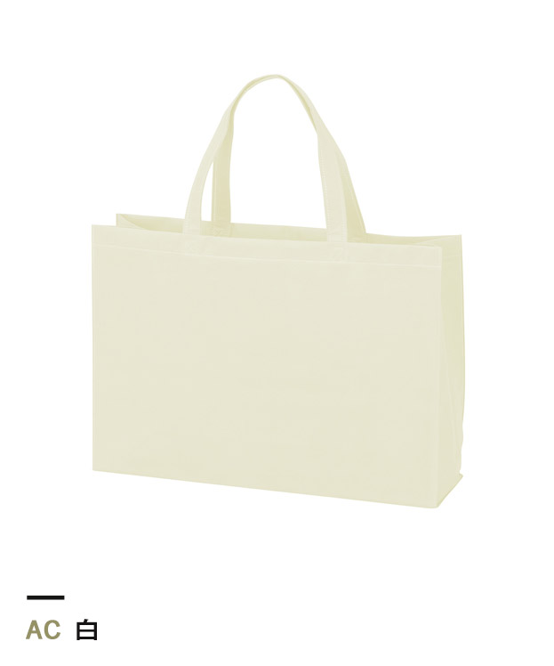 「不織布バッグ ベーシックトート75(中横)」は、ワイドサイズと長めの持ち手が特徴の不織布トート。厚み75gで薄手のため、価格も格安となっております。展示会や説明会の資料配布バッグには定番人気で、サイズが大きいので名入れの販促力もより高くなります。ロゴやイベント名の印刷製作をぜひご利用ください。