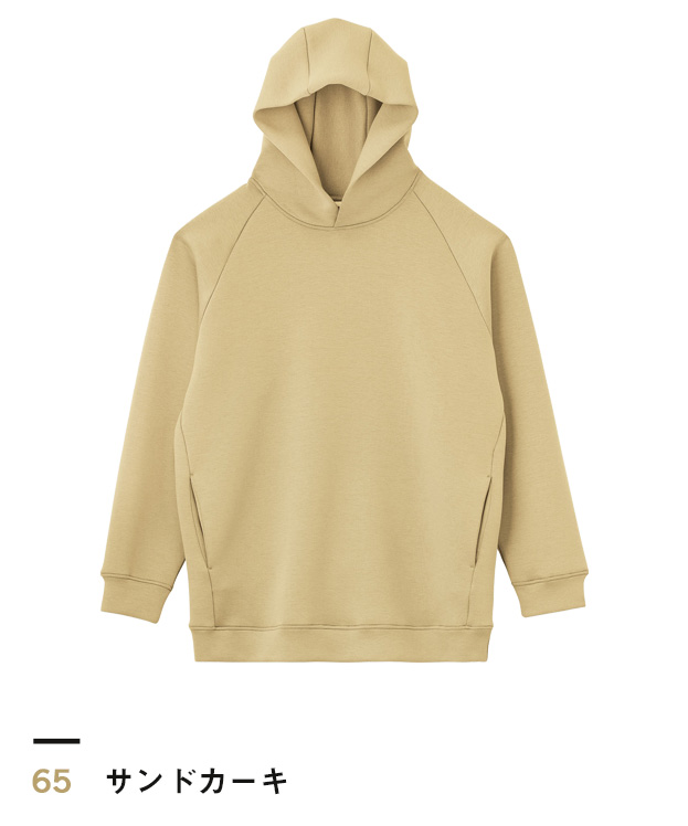 保温性に優れていて抗菌防臭加工で汗をかいても快適な、「ドライストレッチプルオーバーパーカ(ポリジン加工)」。生地の間に空気をためることが可能なダンボールニットは、外気の影響を低減する保温性に優れた素材。肌寒い季節にも活躍します。ポケットはメッシュ素材を使用し、蒸れにくさを実現。カラーも男女問わず好まれるナチュラルな色なので、名入れ作成すれば物販用のグッズとして活用できます。