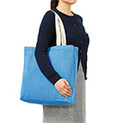 ナチュラルカラーの持ち手とカラフルカラーが映える、「シャンブリックキャンバスボックストート」。染色済みの生地の端切れを再利用した再生コットンを使用しており、地球に優しいバッグです。A4サイズが縦向きにらくらく入るサイズなのも便利。名入れプリントがよく目立つため、促販効果も抜群です。激安価格で発注できますので、エコ関連イベントや展示会で配布するノベルティとしてご検討ください。