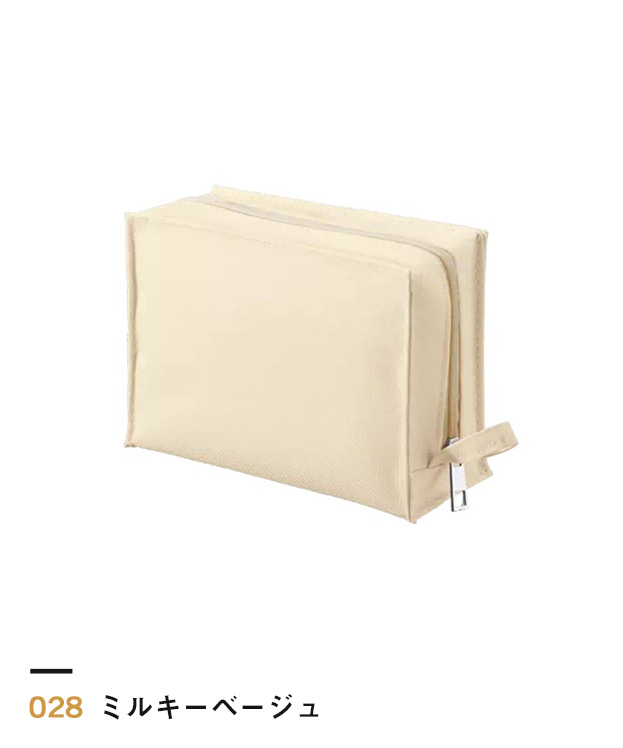 コスメポーチやトラベルポーチとして活躍する、「ユーティリティスクエアポーチ(S)」。縦置き・横置きができる両用タイプで、ループ部分もUの字にすることでフックに掛けやすいのも特徴。男女問わず使いやすいカラーのため、ノベルティとして配りやすい商品です。格安で発注可能なので、名入れプリント製作しバラマキノベルティとしても活用できます。雑誌の付録としても最適。