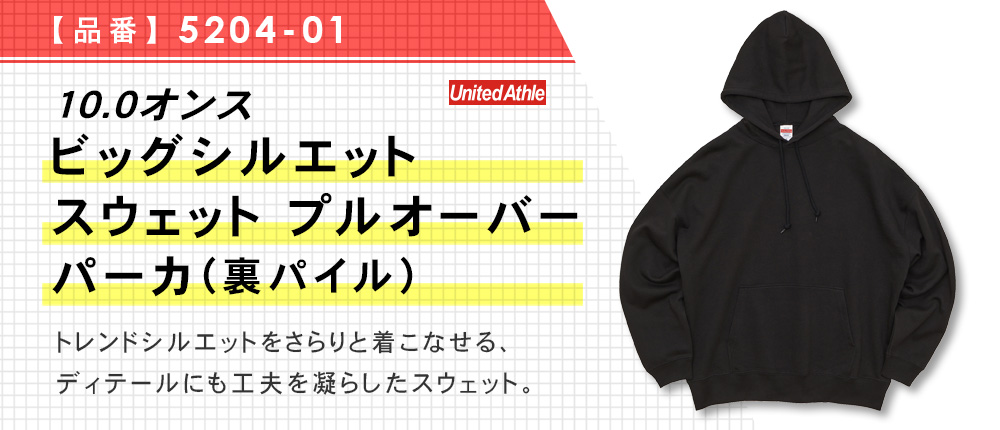 10.0オンス ビッグシルエット スウェット プルオーバー パーカ(裏パイル) 5204-01