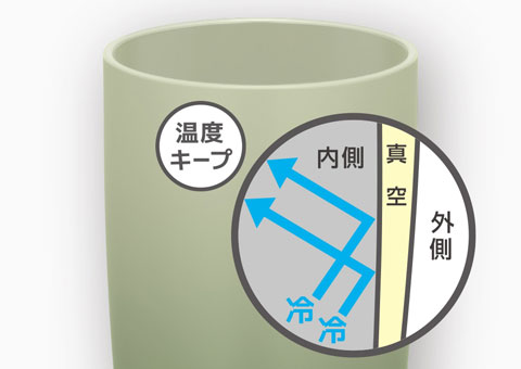 ※保冷効力とは、室温20℃±2℃において4℃以下の水を口元から1cm下の位置まで満たし、水温が4℃±1℃のときから1時間放置した場合におけるその水の温度です。