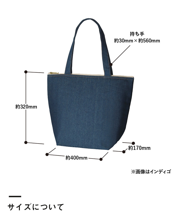 「デニムライク保冷トート(M)」は、再生ファブリックの糸を使用して綾織にすることで、デニム調の生地に仕上げた保冷トートバッグ。環境に優しい素材を使用しつつも、カジュアルファッションにもマッチするのが嬉しい商品です。長めの持ち手で肩掛けできるので、スーパーなどの食品の買い出しエコバッグや、アウトドア用バッグにも◎。広範囲に名入れ印刷が可能ですので、イラストやブランドロゴ入りの物販バッグやノベルティバッグにご活用ください。
