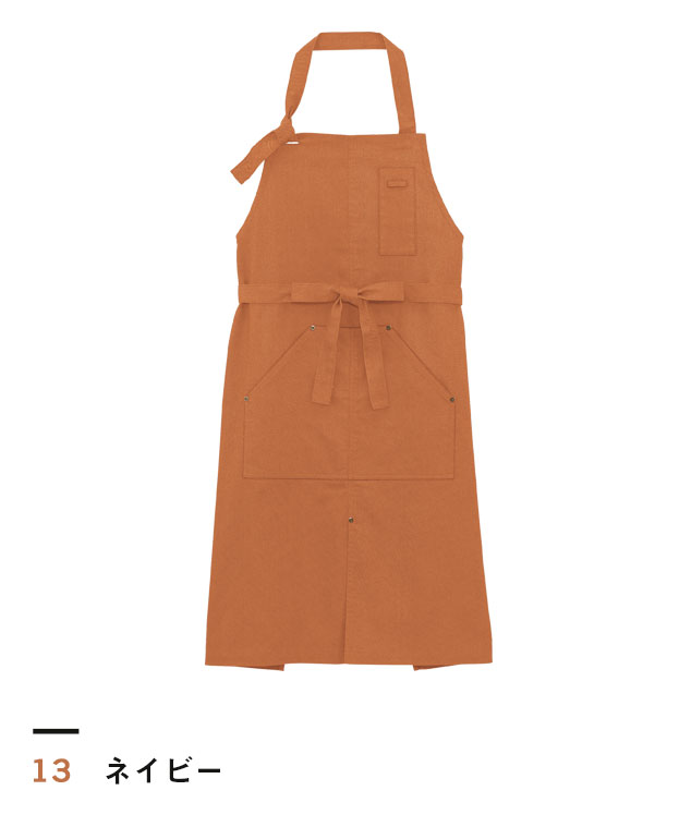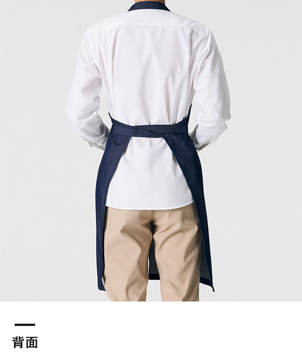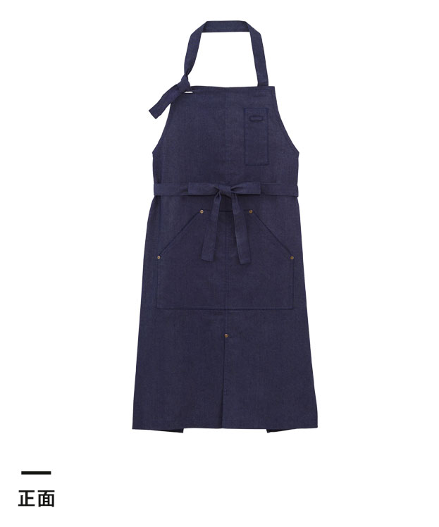 胸元部分で自由にサイズ調整が可能な「胸当てエプロン」。ネイビーカラーのおしゃれなデニム調生地で、ほどよいワーク感を演出します。足の動きを妨げないフロントベンツ入りなので、動きやすさも◎。大きなフロントポケットの他に、ペンが挿せる胸ポケットも付いているのが便利です。インテリアショップや雑貨店などのこなれたスタッフ制服として、ロゴなどの特注名入れプリントはいかがでしょうか。