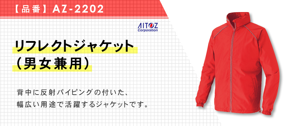 「リフレクトジャケット(男女兼用)」は、フードイン仕様、反射パイピング素材使用で使い勝手抜群なジャケット。通常のイベントウェアや作業ユニフォームとしてはもちろん、夜間の見回りや交通案内などにも適した商品です。名入れ印刷も可能ですので、団体名や企業ロゴなどのプリント制作をぜひご利用ください。