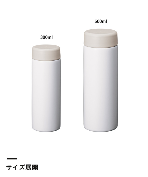 「バイカラーサーモステンレスボトル300ml」は、絶妙な色差のバイカラーデザインがかわいいコンパクトボトル。氷を入れやすい広い口径や、お手入れしやすいシンプル構造も魅力で、どんなシーンでも使いやすい商品です。側面の広範囲に名入れプリントが可能ですので、店舗物販やアーティストグッズなどの特注作成にも最適。イラストやロゴ入りのおしゃれなボトル製作にいかがでしょうか。