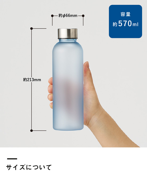 半透明のカラーがおしゃれな「目盛り付フロストボトル570ml」。たっぷり入る570ml容量で、50ml刻みの目盛り付きなのでシェーカーなどにも活躍する商品です。フルーツウォーターや常温水の持ち歩きなど、様々な用途にご活用ください。側面にはオリジナル印刷を承っており、店舗ロゴやブランドロゴなどがおしゃれに映えます。