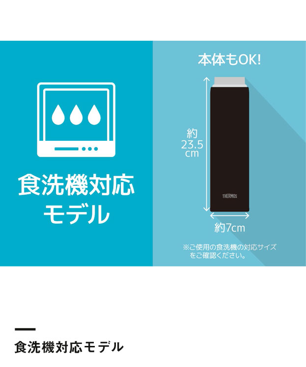 ※保温・保冷効力とは、室温20℃±2℃において製品に熱湯(4℃以下の水)をせんユニット下端まで満たし、湯温が95℃±1℃(4℃±1℃)のときからせんユニットを付けて縦置きにした状態で6時間放置した場合におけるその水の温度です。
