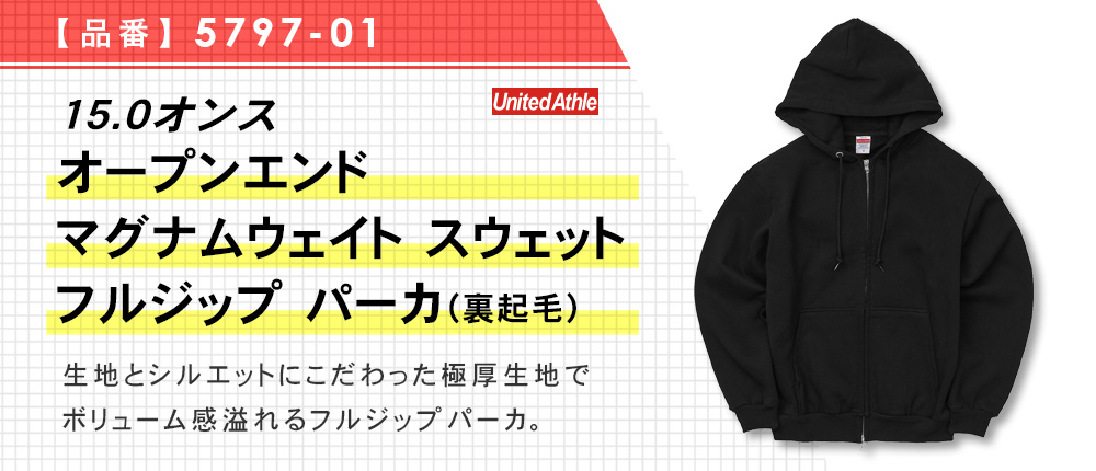 15.0オンス オープンエンド マグナムウェイト スウェット フルジップ パーカ(裏起毛) 5797-01