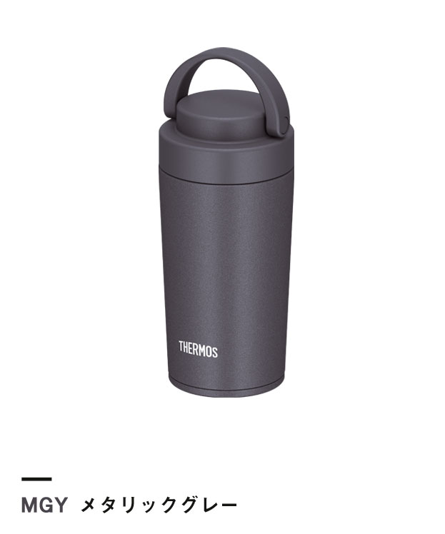 「サーモス 真空断熱ケータイタンブラー 320ml/JOV」は、蓋部分に折りたためるキャリーハンドルが付いた、コンパクトな320ml容量の保温・保冷タンブラー。飲み口が広く香りを楽しめるので、コーヒーや紅茶の持ち運びにも最適です。全パーツ食洗機OKなのでお手入れしやすさも抜群。本体に店舗ロゴや企業ロゴのオリジナル印刷が可能ですので、販売グッズや周年記念品にいかがでしょうか。
