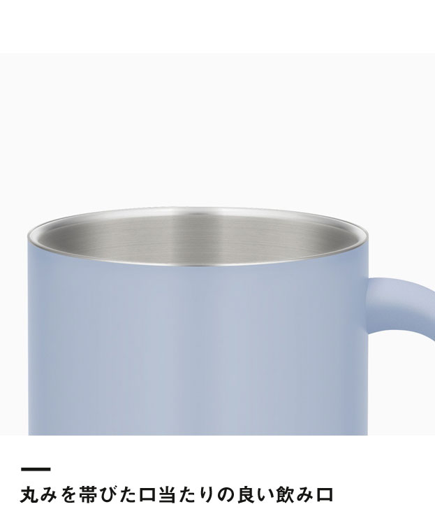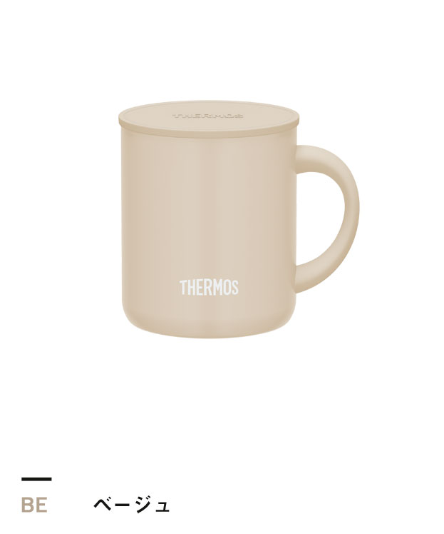 「サーモス 真空断熱マグカップ 280ml/JDG」は、ハンドル付きで持ちやすく、食卓でも気軽に使えるシンプルなマグカップ。真空断熱構造で保温・保冷が長時間続き、蓋付きなので保温効果もより長持ちします。同シリーズ内では最も小さい280ml容量で、自宅やオフィスでのブレイクタイムにも最適です。企業ロゴや店舗名の特注名入れプリントを承りますので、物販グッズや店舗ノベルティ作成にいかがでしょうか。
