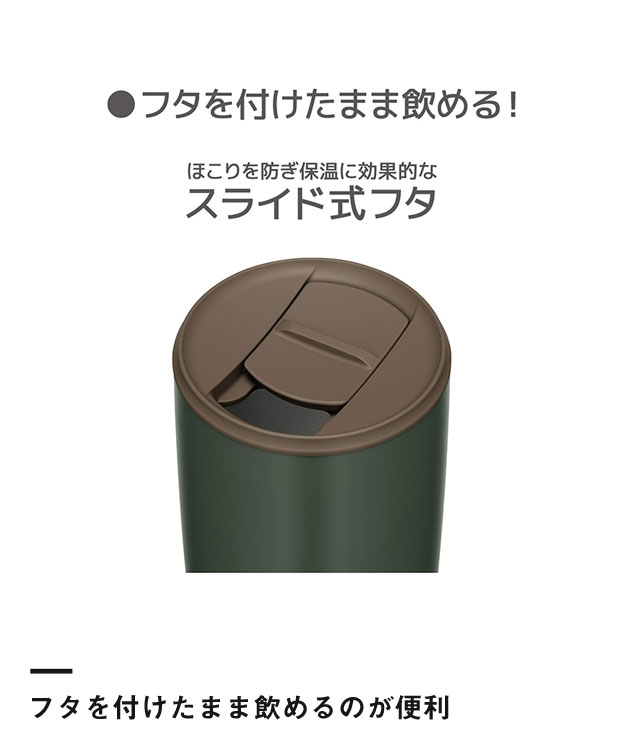 「サーモス 真空断熱タンブラー 500ml/JDP」は、真空断熱構造で外側が熱くならない大容量タンブラー。飲み口がスライド開閉するフタ付で、温かさをキープしてホコリの侵入も防ぎます。もちろん保冷もOKなので一年中活躍し、たっぷり入るのでデスク使いやドライブ、アウトドアにもお薦めです。ブランドロゴや企業ロゴの格安名入れ印刷を施し、抽選で当たるキャンペーングッズや、カーディーラーの成約記念品などの制作にご活用ください。