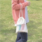 「コットン窓付き巾着」は、コットン巾着にPVC素材の窓がついた、中身が見えるおしゃれな商品。販売品を入れることで外から見えるので、販促用ラッピングや季節限定のセット販売バッグなどにお薦めの商品です。旅行の小分け用バッグなどにも便利に使って頂けるので、物販グッズの制作にも◎。店舗ロゴやブランド名のオリジナル印刷を激安価格で承ります。