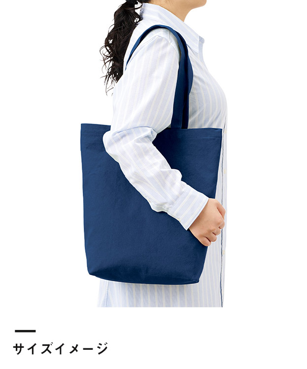 こなれ感のあるウォッシュキャンバス生地がおしゃれな「ライトウォッシュキャンバストート(M)」。S・M・Lのサイズ展開のうち、Mサイズはデイリーバッグやお買い物バッグにちょうど良い大きさです。持ち手が長く、肩掛けもスムーズ。名入れ面が良く見えるので、アーティスト名やブランドロゴをPRする特注ノベルティにご活用いただけます。
