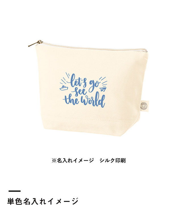 「オーガニックコットンキャンバスデイリーポーチ(M)」は、肌触りが良く環境にも優しいオーガニックコットンを使用したポーチになります。自立する舟形デザインは、外出先でも使いやすくて便利。大きめのMサイズは、旅行用のボトルやタオルなどをまとめるのにもピッタリです。格安価格の本体には、イラストやブランド名などのオーダーメイドをお薦めしております。イベントの来場記念品や店舗ノベルティにいかがでしょうか。