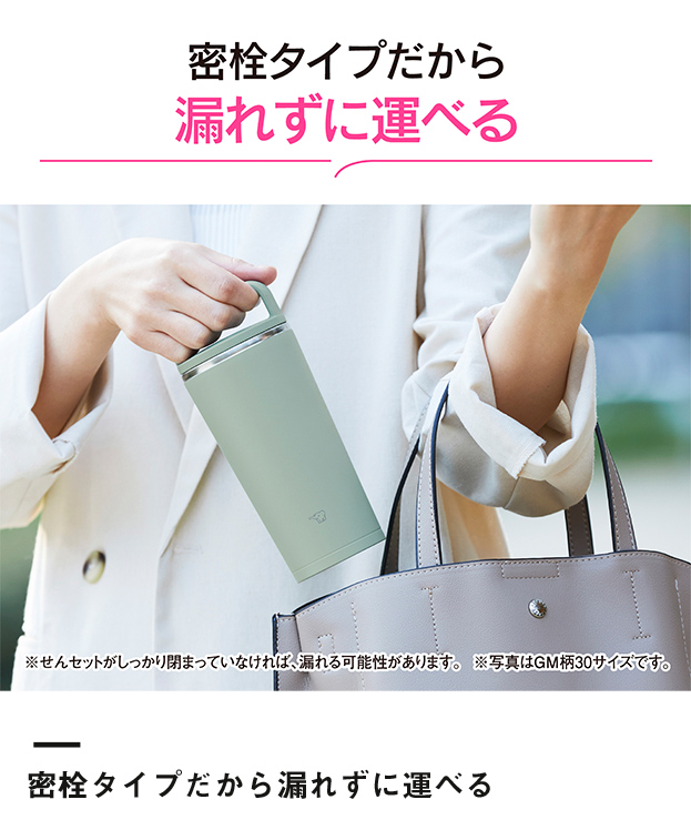 「象印 ステンレスキャリータンブラー(SX-JS型) 400ml」は、ハンドルスクリューせんでしっかり密栓できて持ち運びに便利なタンブラー。中までしっかり洗える広口タイプで、食洗機にも対応しているのでお手入れ楽々です。400ml容量でたっぷり入るので、デスク使いやドライブでも活躍します。ロゴやイラスト印刷が可能ですので、女性向けキャンペーングッズや企業の周年記念品などにぜひご活用ください。