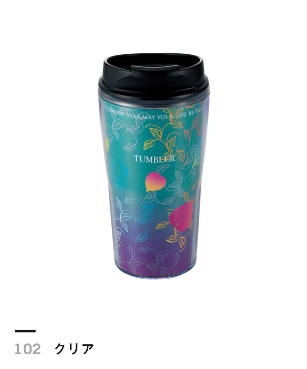 側面をぐるっと囲むようにオリジナルデザインの台紙を差し込む名入れ専用タンブラーが、「シールタンブラー260ml」です。外側の温度が伝わりづらく結露しにくい二重構造になっており、ホットもアイスも入れられます。飲みきりやすい容量260mlサイズは、自宅やオフィスでのカフェタイムにもってこいです。ファンクラブの入会記念品や、展覧会の物販グッズなどの激安オリジナル作成にいかがでしょうか。