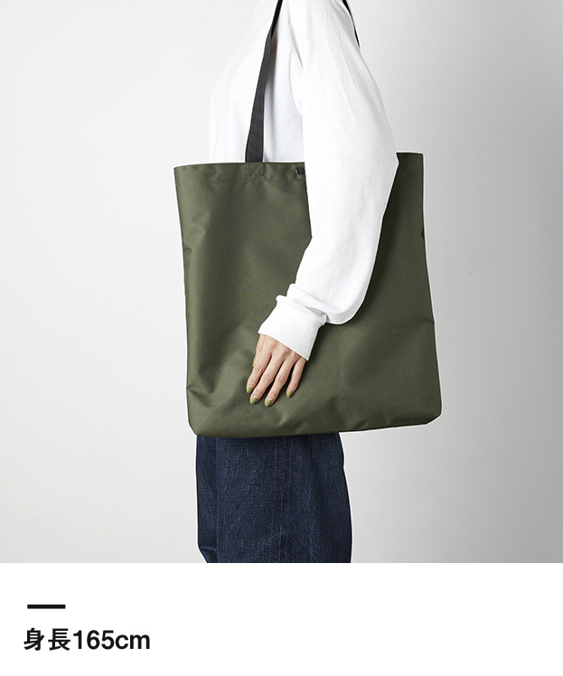 「リサイクルポリエステル B4トートバッグ」は、環境に優しい再生ポリエステルを使用したエコロジカルなトートバッグ。B4サイズに対応できるやや大きめサイズは、メインバッグとしても活用できる大きさです。生地には撥水加工が施されており、梅雨シーズンのノベルティやレジャー用の物販グッズにもピッタリ。広い名入れスペースには、当店ならではの格安価格にてプリント制作を承っております。