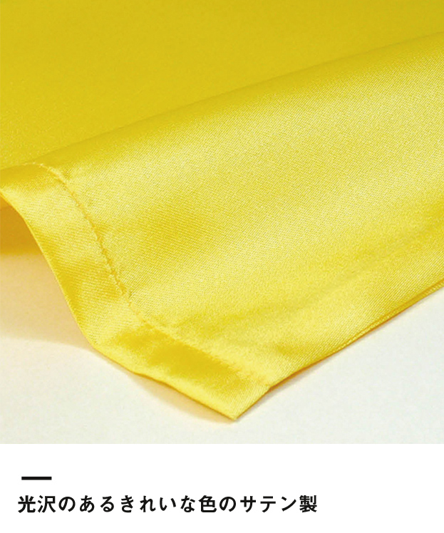 「サテンロング法被(ハチマキ付)」は、華やかなカラーを取り揃えたサテン生地の袖なし長法被。光沢感のあるサテン生地と明るいカラーで良く目立つので、イベント制服やダンス衣装のオリジナル制作にぴったりです。同じカラーのハチマキも付属しているのでお祭りらしさを演出できます。キッズサイズから大人サイズまで特注名入れ制作を承りますので、イベント名やチ―ムロゴ印刷をご利用ください。