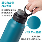 「アトラス Activa ハンドル付きダイレクトボトル 1000mL」は、持ち運びやすいハンドル付きの大容量ボトルになります。本体には傷がつきにくいパウダー塗装が施されていて、ボトルをバッグから出してそのまま携帯しても安心です。キャップにはロック機能が付いていて、飲む時は邪魔にならずピタッと固定できます。ごくごく飲める大容量1,000mlの保冷専用ボトルには、激安価格にて名入れプリントが可能です。