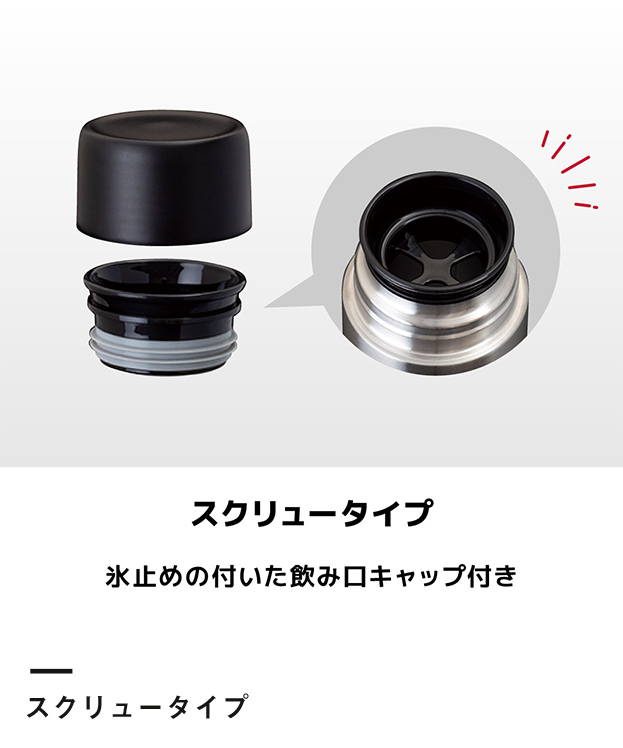 - ※保冷効力とは室温20度±2度において製品に冷水を飲み口キャップの下端まで入れ、縦置きにした状態で水温4度±1度になったとき、キャップをして6時間放置した後のその水の温度です。