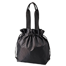 「ポリ巾着トート(M)」は、口元のフリルデザインが可愛らしい印象を与えるポリエステルバッグになります。巾着タイプの口元は大きく開いて物が出し入れしやすく、キュッと絞って中身の落下防止にもなるので実用的。A4書類が横に入る程のサイズ感は、サブバッグにも喜ばれます。ボディのおしゃれ感を高めるイラストやロゴのフルカラー印刷も承りますので、アパレルの購入特典ノベルティや展覧会の記念品などにぜひ。