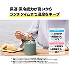 「象印 ステンレススープジャー(SW-KA型) 300ml」は、高い保温能力とお手入れのしやすさが嬉しいステンレススープジャー。フタが3D断熱カプセル構造になっていて、熱が外へ逃げてしまうのを防ぎます。パッキンとせんが一体化したシームレスせんが、洗いにくさを解消。容量300mlサイズはお弁当に汁物を付け足したいときに便利です。食料品の販促キャンペーンや飲食店の周年ノベルティなどにいかがでしょうか。