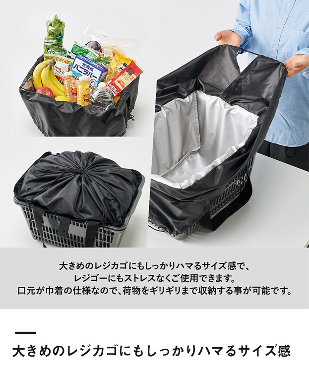 コンパクトに折りたためて持ち運びに便利なレジかごバッグの「ライトクーラーレジカゴトート」です。裏面にはアルミコーティングした生地を使用しているので、保冷温効果に優れています。保冷バッグ特有のごわつきがなく、収納時もかさばらずに持ち歩けるのがポイントです。バッグを肩掛けた際に名入れプリントが目立ちますので、百貨店の記念品やスーパーの販売用お買い物バッグのオーダーメイドにいかがでしょうか。