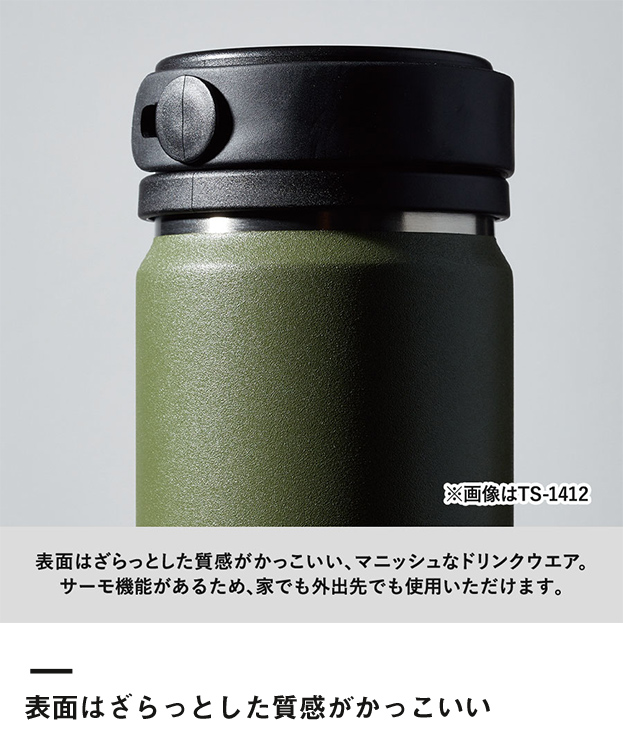 「Zalattoシームレスサーモボトル350ml」は、マニッシュな雰囲気が漂うZalattoシリーズの保冷温ボトル。シリーズならではのかっこよさに加え、フタとパッキンが一つになったシンプルなパーツ構造によって簡単にお手入れできるのが魅力的です。アパレルショップの記念品やライブグッズの物販などにお薦め。当通販店では格安価格にてブランド名やロゴをプリント制作致します。