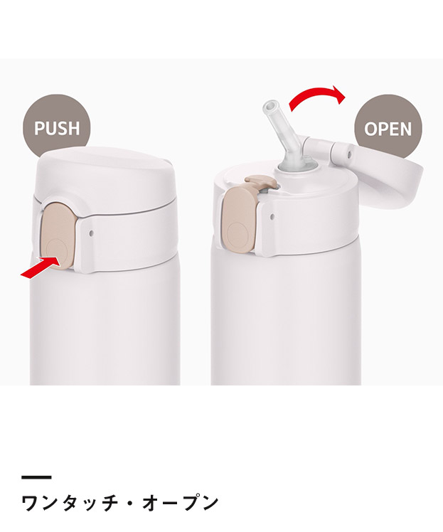 「サーモス(THERMOS) 真空断熱ストローボトル 510ml/FKA」は、飲みやすいストロータイプのボトルです。片手でサッと開くワンタッチオープンのフタは、仕事や家事、スポーツをしながらでも手軽に使用できます。マイボトルにぴったりの容量510mlサイズは、学生にもビジネスマンにも好評です。当店ならではの激安価格にて印刷制作を承りますので、店舗の周年ノベルティや社内記念品などにご検討下さいませ。