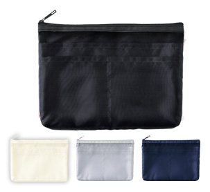 5つのポケットで小物をスマートに整理できる便利な収納ポーチのらくらく仕分けポーチ(M)。大きめのMサイズはA5サイズのノートやスマートフォンが収まるサイズ感で、社内移動や旅行時のサブバッグとしても重宝します。名入れプリントは表面・裏面どちらにも格安プリント可能です。アパレルブランドの購入特典やイベント、旅行代理店のノベルティなど様々なオリジナル制作にご活用下さいませ。