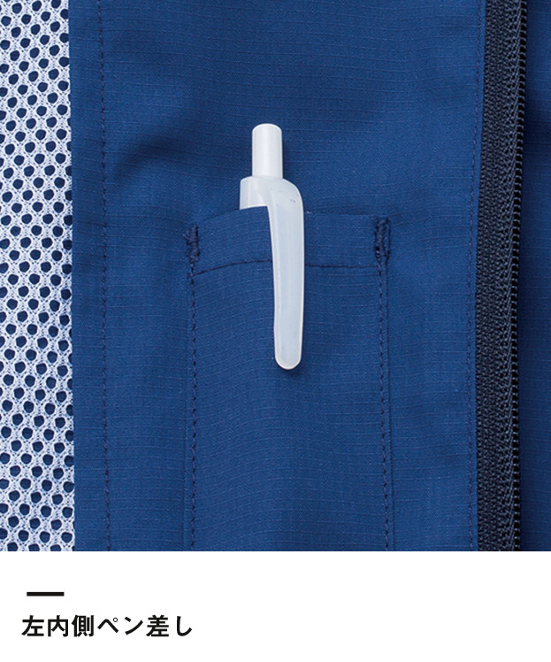 撥水性や耐久性に優れた素材を使ったベストタイプのジャンパーです。その他のブルゾンと組み合わせて使うこともでき、ビジネスシーンでも活用しやすいデザインで作成されています。オリジナルのロゴなどを印刷し、激安な価格で注文製作を行うことができるアイテムです。