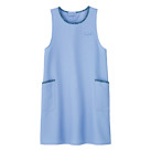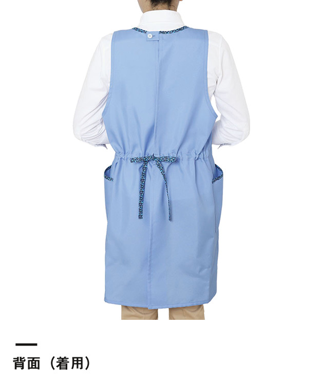 胸元やポケットの縁部分に花柄をあしらったタイプのエプロンです。ファッション性をアピールできながら清潔感もあり、撥水や制電機能のある素材で製作されています。飲食店などのほか、様々な店舗や施設のスタッフ制服としてオリジナル制作がしやすいモデルです。