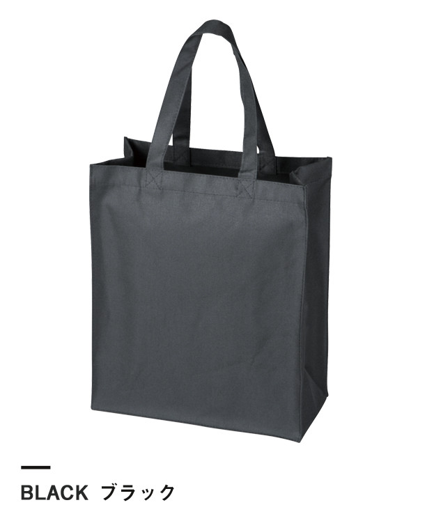見た目もすっきりとしたスクエアタイプのトートバッグです。B4サイズの書類やファイルが入る大きさがあり、マチ幅は14cmを確保しているので、広い用途で活用できるアイテムです。オリジナルの印刷やプリントを施した格安な価格の名入れ印刷などにも対応しています。