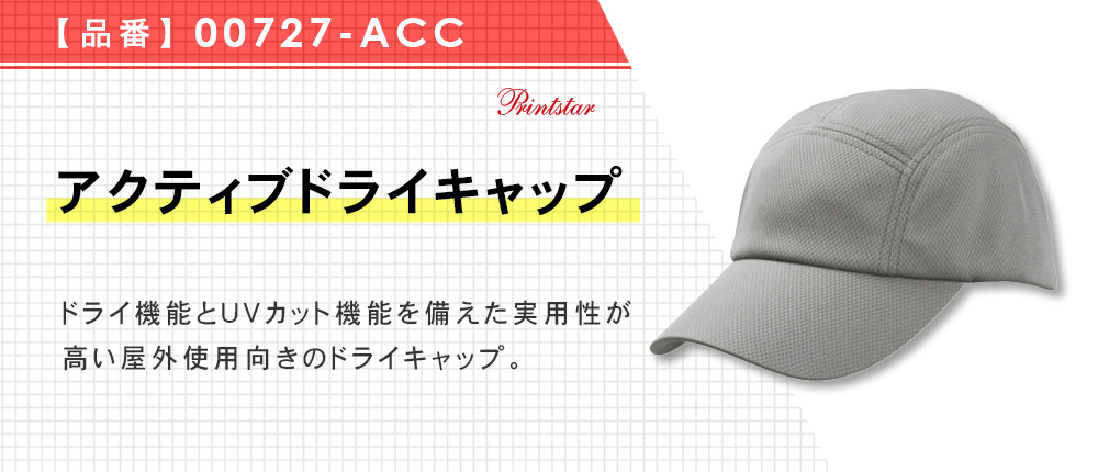 優れたドライ機能やUVカット機能を備えている、帽子としての実用性が高いキャップになります。屋外での使用に向いているため、スポーツや野外イベントなどのスタッフ向けユニフォーム・制服などの格安価格なオリジナル制作などに数多くご注文いただいております。